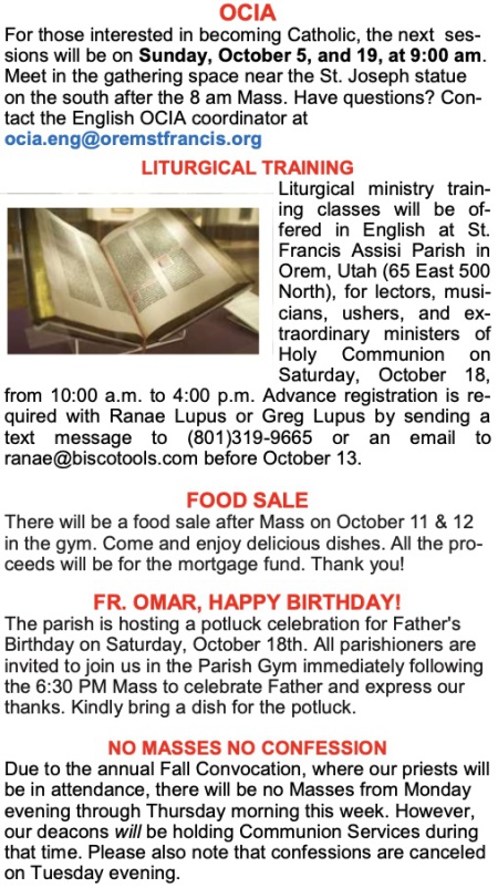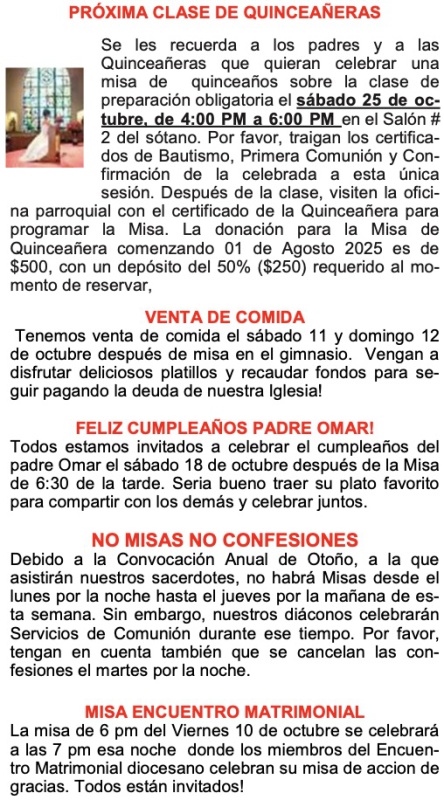 Parish Bulletin Oct 5 - 11 (Boletín Parroquial)