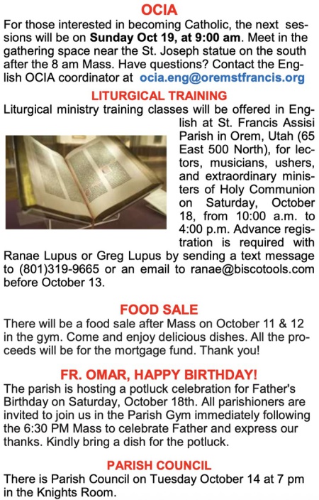 Parish Bulletin Oct 12 - 18 (Boletín Parroquial)