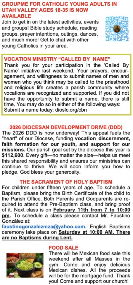 Parish Bulletin February 1-7 (Boletín Parroquial)