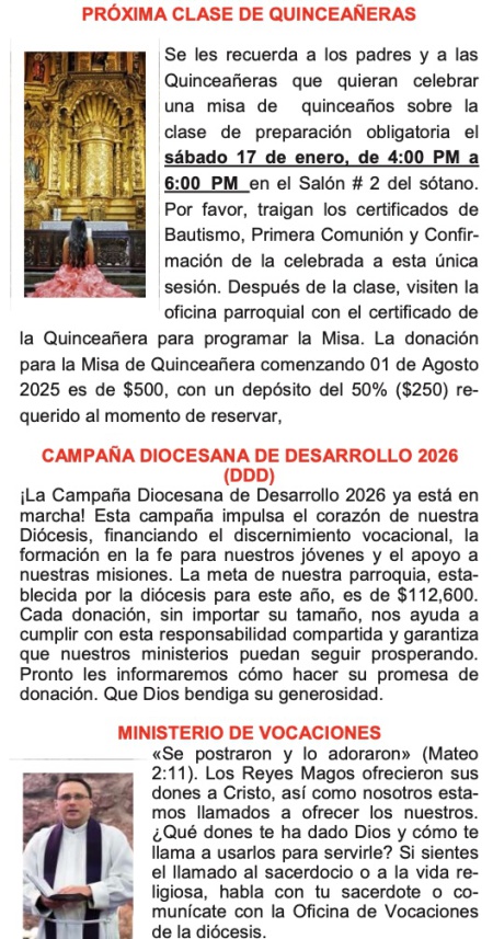 Parish Bulletin Jan 4 - 10 (Boletín Parroquial)