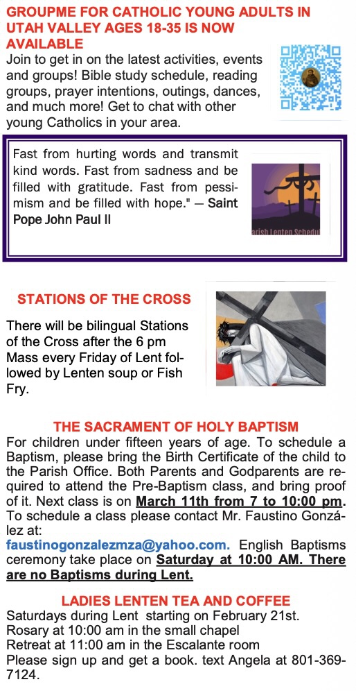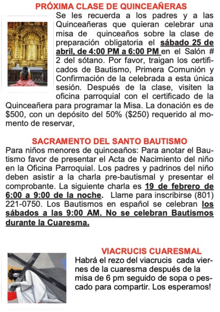 Parish Bulletin Feb 22 - 28 (Boletín Parroquial)