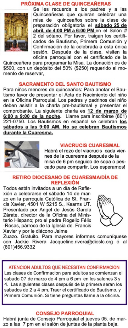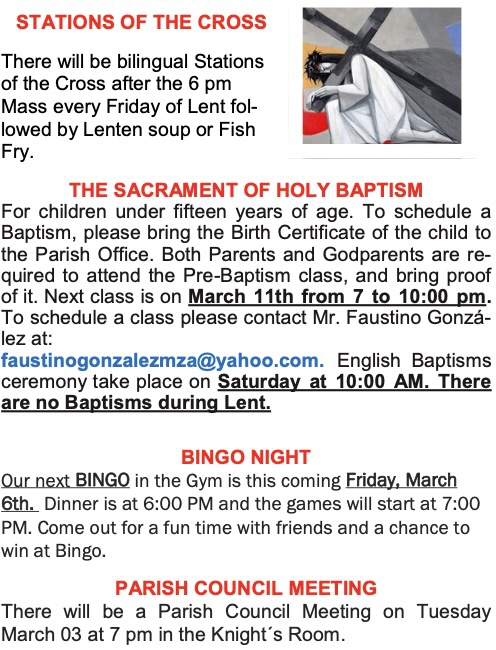 Parish Bulletin Mar 1 - 7 (Boletín Parroquial)
