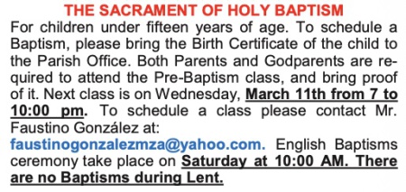 Parish Bulletin Mar 8 - 14 (Boletín Parroquial)