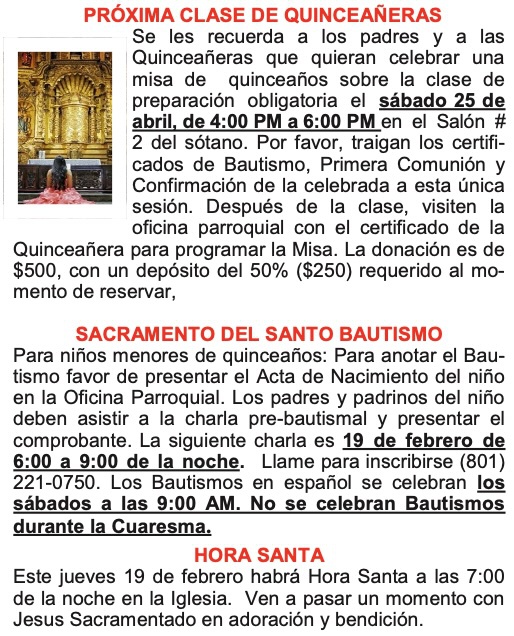 Parish Bulletin Feb 15 - 21 (Boletín Parroquial)